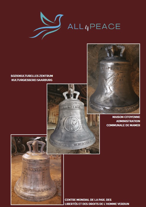 Inspiriert von der #Peacebell von Michael Patrick Kelly, die 2021 in der KulturGießerei Saarburg zu sehen war, werden drei Partnerhäuser aus Mamer (L), Saarburg (D) und Verdun (F) je eine #All4Peace Glocke im Museum der KulturGießerei von der Glockengießerei Schmitt aus Brockscheid gießen lassen. Als starkes, gemeinsames Symbol für den Frieden, die Gemeinschaft und die Freundschaft im Herzen Europas werden sie dann später in ihren Gemeinden einen Platz finden.
